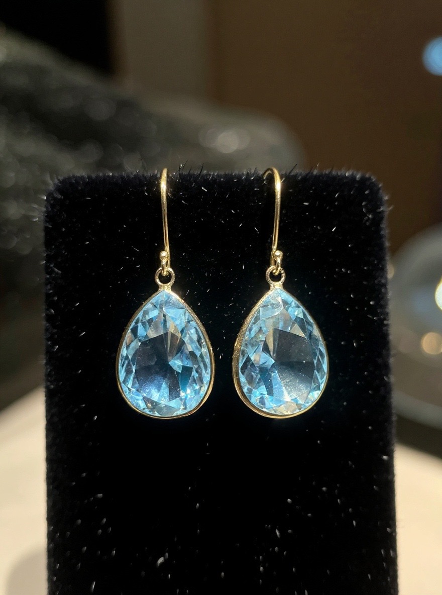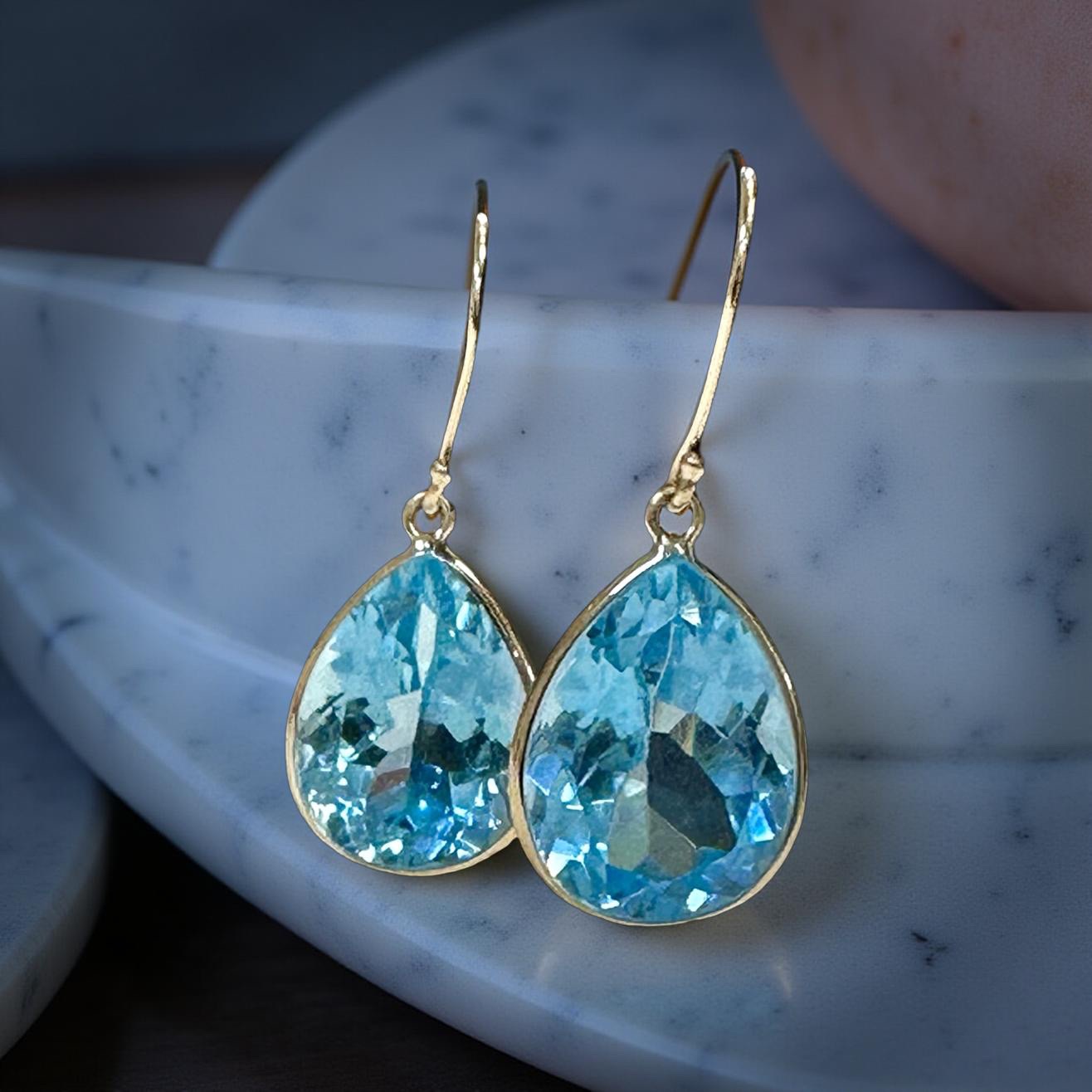 Discover the allure of 14KYG Blue Topaz tear drop earrings a true masterpiece of design