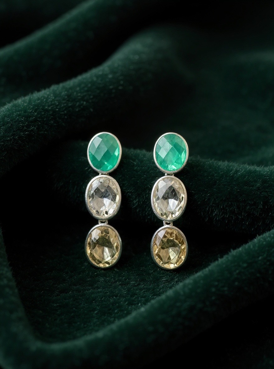 Unleash your inner confidence with SS three stone earrings, a gorgeous accessory that radiates positivity.