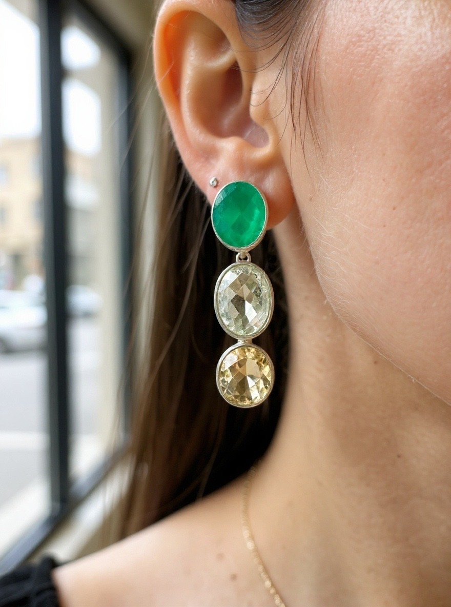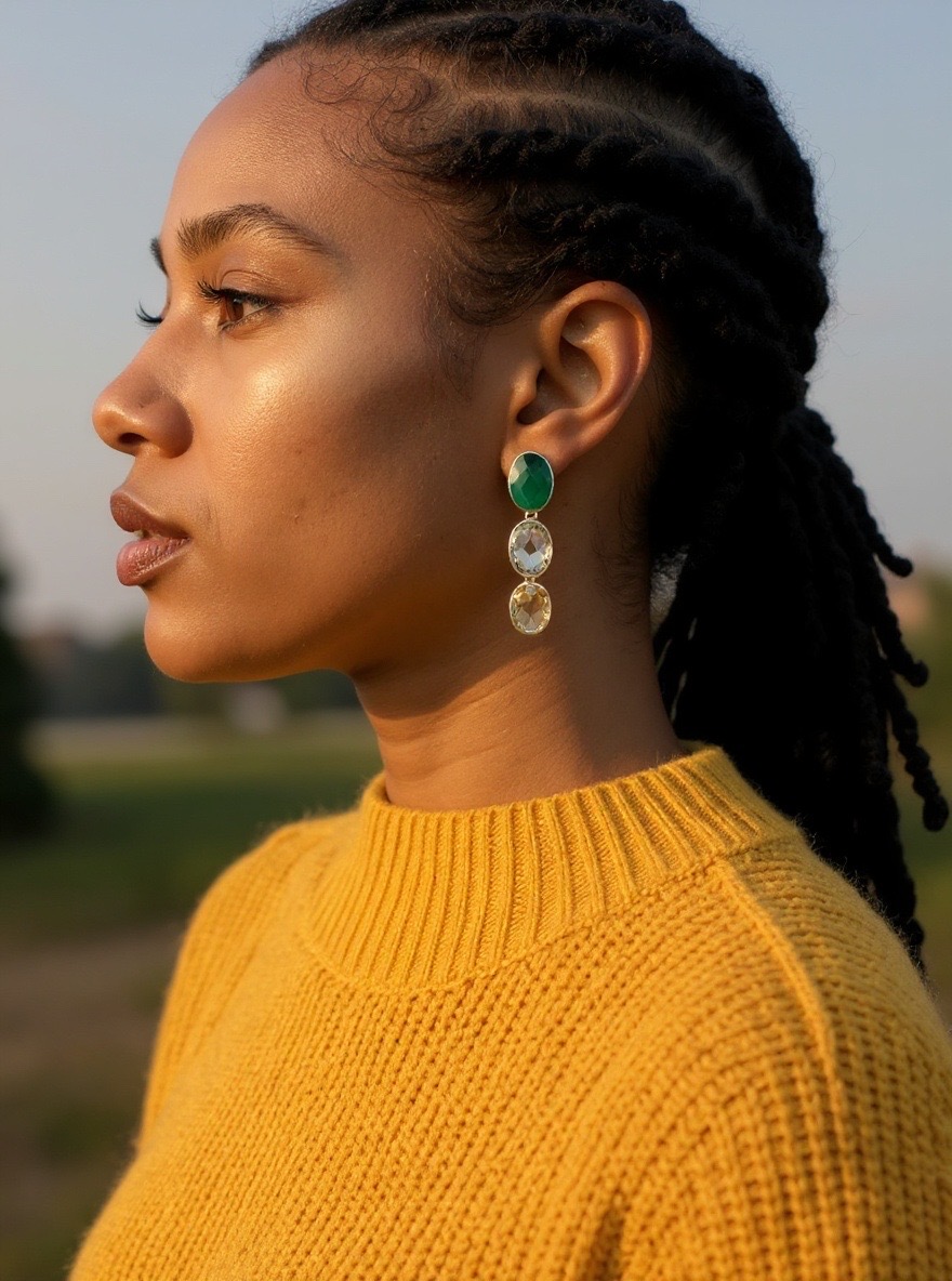 Unleash your inner confidence with SS three stone earrings, a gorgeous accessory that radiates positivity.