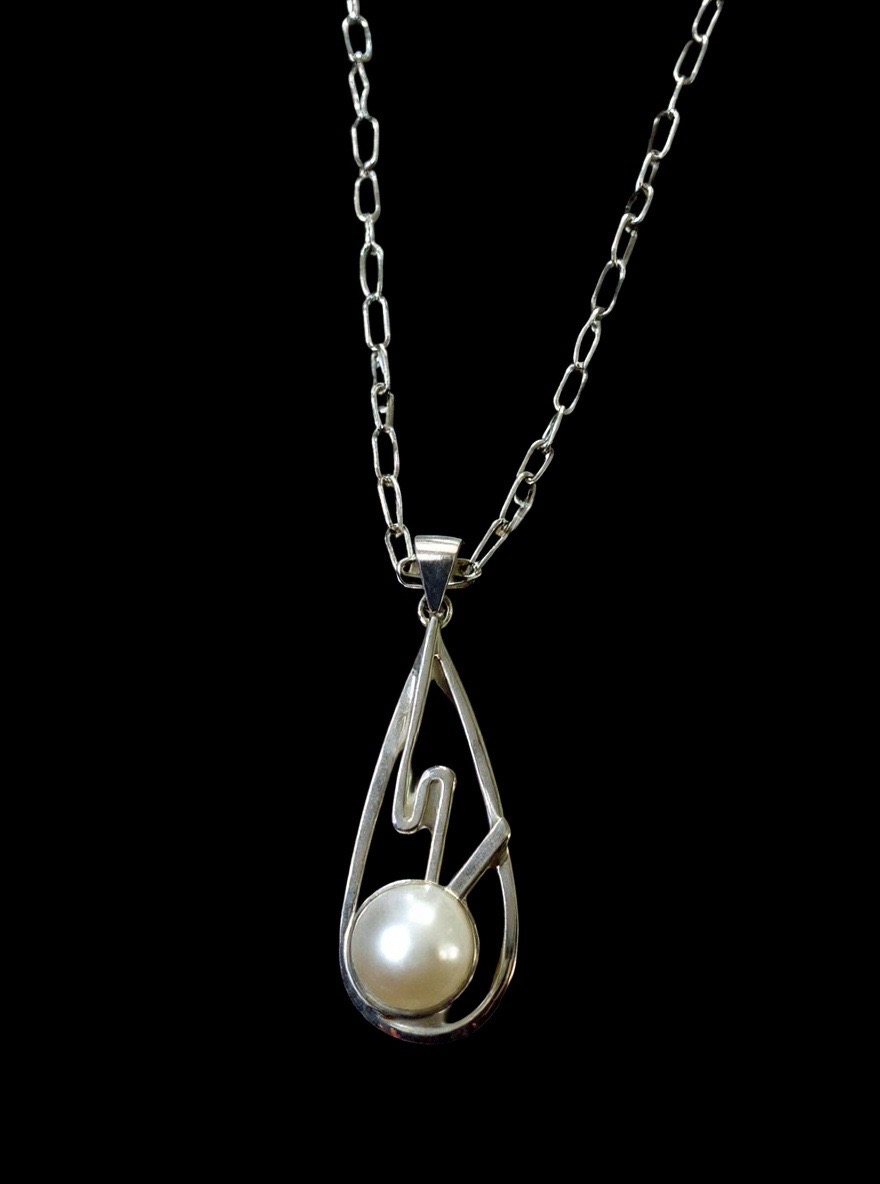 Exquisite Hand Shape and Hand Hammered Sterling Silver Pendant, adorned with a stunning white Mabe pearl, designed to be a captivating piece for any occasion.